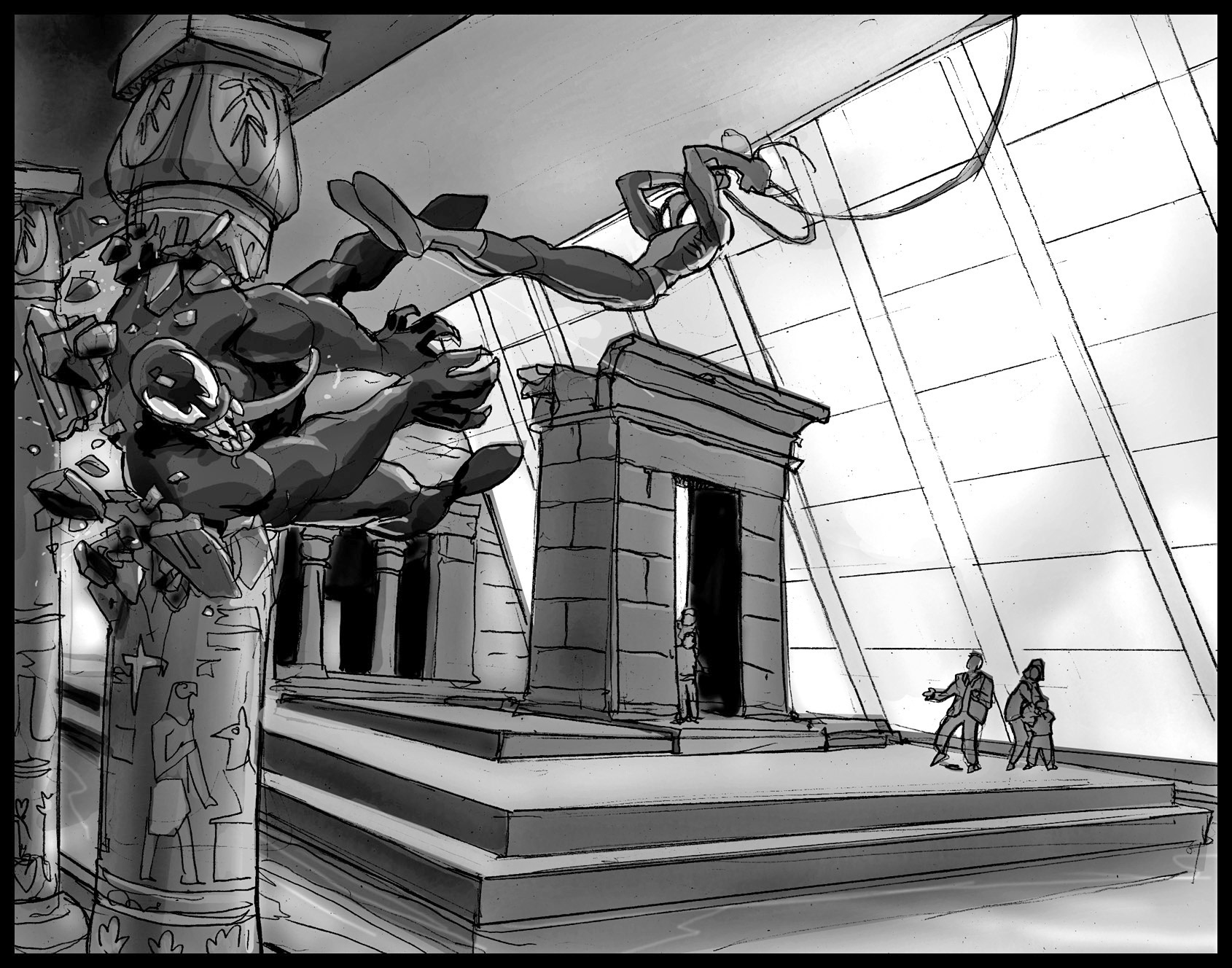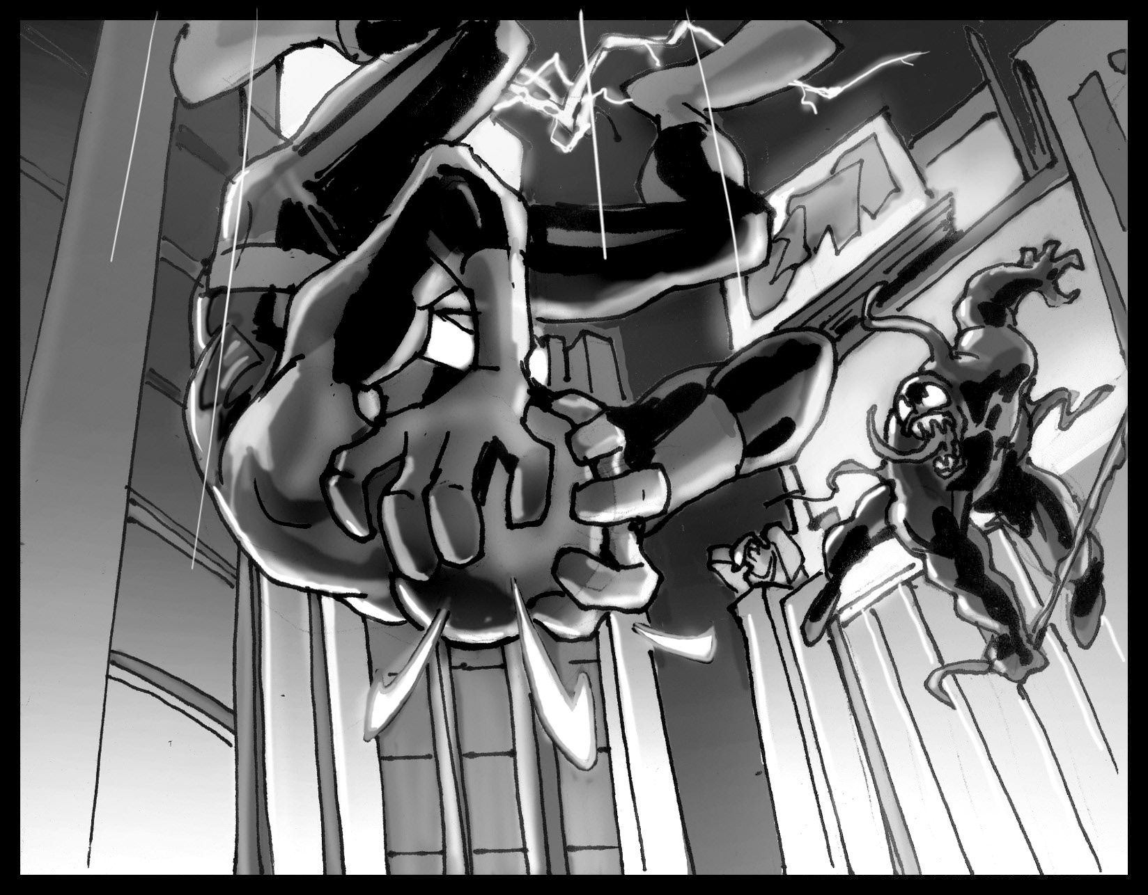 In 2004 I started doing concept art for an adaptation of Marvel's Ultimate Spider-Man comics. Using toon shaders, stylized anatomy and motion graphics we mimicked the feel and style of the book, while Brian Bendis and Brian Reed handled the story. Oh, and we had playable Venom.